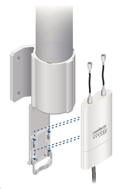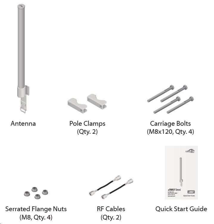 Jedná se o robusní řešení 13dbi všesměrové antény pro přístupové body pracující v pásmu 2.4GHz a využívajících standardu 802.11n v kombinaci s technologií MIMO. Anténa disponuje dvěma RSMA-female konektory. Součástí dodávky jsou dva voděodolné RSMA pigtaily pro propojení s jednotkou Rocket M2, držák pro tuto jednotku a montážní sada na stožár, viz. obr.