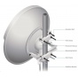 Ubiquiti RocketDish RD-5G31-AC je 2x2 parabolická anténa vhodná pro dlouhé PtP spoje. Vše je připravena pro snadnou a rychlou instalaci jednotek Rocket - součástí balení jsou dva RSMA pigtaly takže není třeba nic dokupovat. Anténa má vylepšenou směrovou charakteristiku, výborný předo-zadní poměr (F/B ration) a menší postraní "laloky" tedy menší interference s okolními antény.