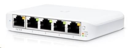 USW-Flex-Mini je maličký 5-portový Gigabitový switch se správou přes UniFi Controller od Ubiquiti Networks v desktop provedení s prvním portem podporující PoE In.