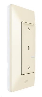 Valena Life with Netatmo bezdrátový žaluziový spínač pro ovládání až 20 drátových žaluziových spínačů (baterie CR2032 a oboustranná lepenka součást balení). Zadní strana je zcela plochá (lze montovat na zeď, sklo, nábytek pomocí šroubů nebo oboustranné lepenky) - barva Béžová, dodáván s rámečkem v barvě Béžová
