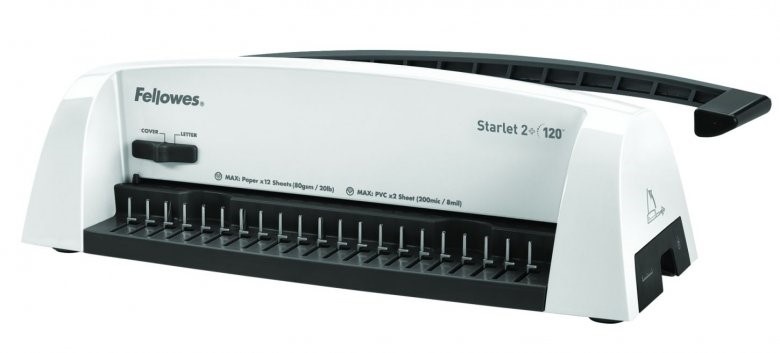 Základní model nové designové řady vázacích strojů Fellowes pro příležitostnou vazbu. Děrovací kapacita až 12 listů 80 g papíru. Kapacita vazby až 120 listů ( do velikosti hřbetu 16 mm). Vazač má dvě přednastavené pozice – pro děrování formátu A4 a A5. Oddělená děrovací a vázací páka pro průběžné vkládaní děrovaných listů do plastového hřbetu výrazně zefektivňuje práci. Díky delší děrovací páce je třeba k děrování minimum síly. Stroj je vybaven integrovanou měrkou pro správnou volbu průměru hřbetu..