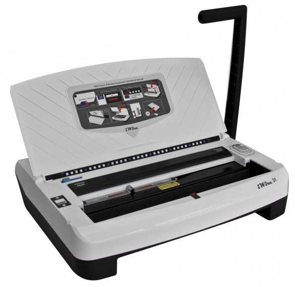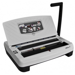 Kroužkový vazač pro kovové hřbety s roztečí děr 3/1" pro vazbu do formátu A4 do 130 listů 80g papíru. (Průměr kroužků 4,8 až 15,9 mm). Je uživatelsky velice komfortní díky své promyšlené konstrukci. Ideální do kanceláře, pro menší a střední zatížení. Široký půdorys zajišťuje dobrou stabilitu při práci. Děruje otvory 4×4 mm (34 děr/ formát A4). Děrovací kapacita až 14 listů papíru současně. Vazač lze použít i pro zhotovení mešího počtu kalendářů. Posuvný jezdec zajišťuje velmi přesné a jemné nastavení zvoleného průměru vazby. Ergonomická děrovací/vázací páka. Měřítko tloušťky svazku pro snadný výběr průměru kovového hřbetu. Integrovaná lišta pro držení kovového hřbetu pro snadné nasouvání děrovaných papírů. Moderní design. Minimalistické rozměry umožňují snadné skladování. Rozměry stroje šxvxh : 42,5×9×31 cm Hmotnost 8 kg.