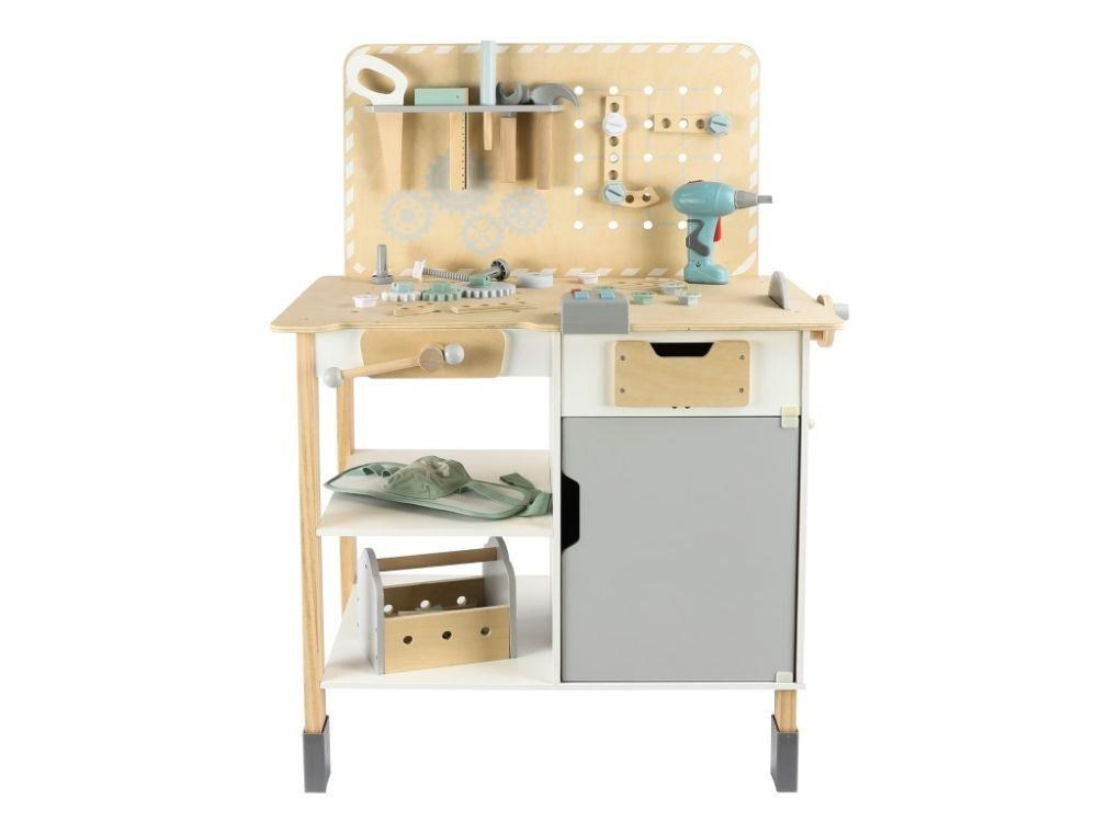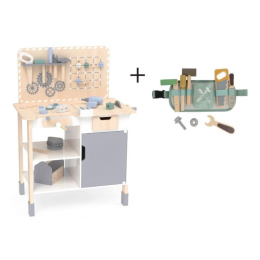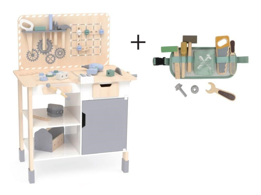 Velký dřevěný dětský ponk s nářadím a rozšířeným příslušenstvím + opasek na nářadí ZDARMA