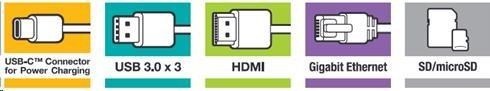 | Interface | USB-C (USB 3.1 GEN 1), 3 x USB 3.0, HDMI, Gigabit Ethernet, SD/microSD |