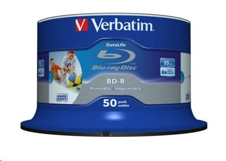 VERBATIM BD-R SL Datalife (50-pack)Blu-Ray/Spindle/6x/25GB WHITE BLUE SURFACE