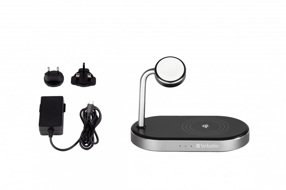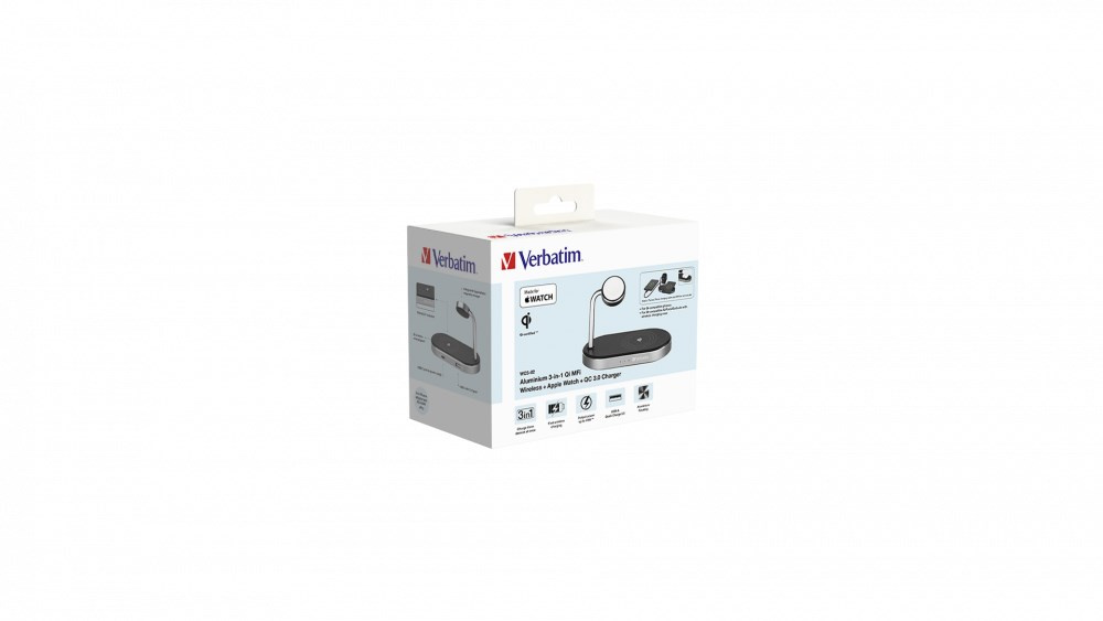 VERBATIM Bezdrátová nabíječka 3v1 Qi MFi pro IPhone a Apple Watch + QC 3.0 Nabíječka WCS-02
