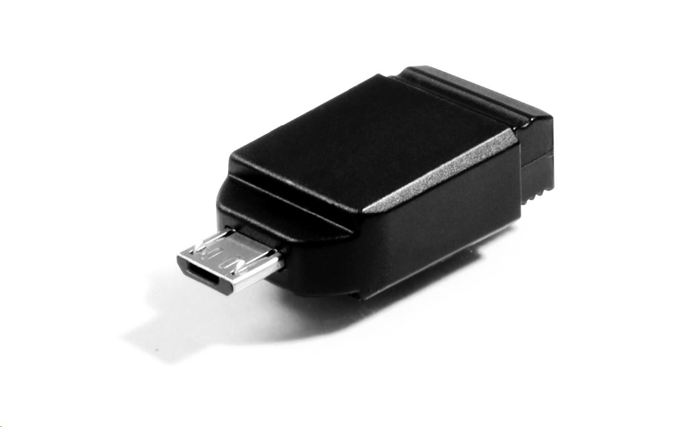 VERBATIM Flash Disk 16GB Store 'n' Stay NANO + micro USB OTG adaptér, USB 2.0, černá