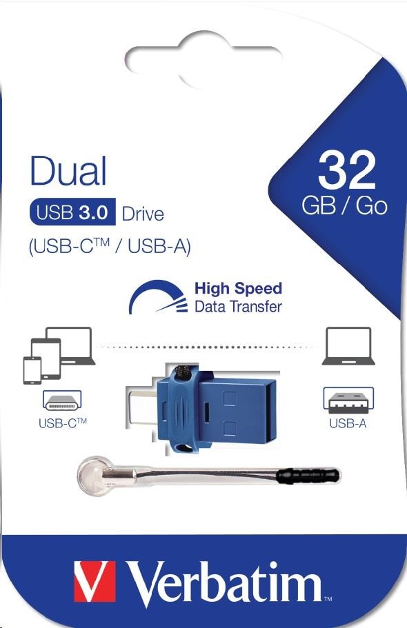VERBATIM Flash Drive 32GB Store 'n' Go Dual Drive USB 3.0/USB Type-C, modrá