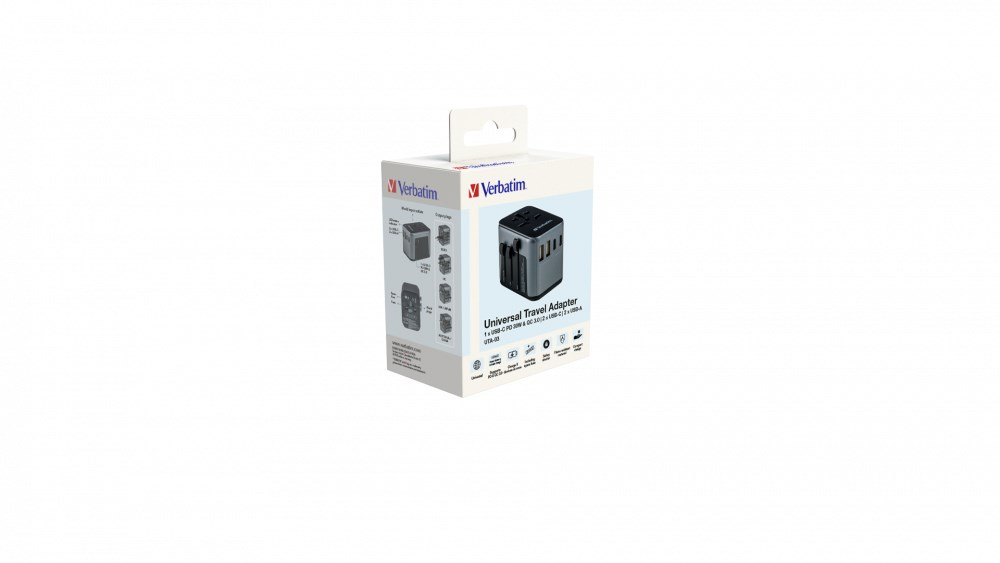 | Pack Contents | Verbatim UTA-03 Universal Travel Adapter with 1 x USB-C PD 30W & QC 3.0 / 2 x USB-C / 2 x USB-A Quick Start Guide |
