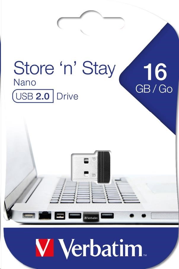 -Low profile USB Drive designed to stay in your device, -No bigger than a Euro coin, -Ideal for netbooks, ultrabooks or play back with TV's, media players and car audio devices, -Free Technical Hotline Support, -Verbatim 2 Year Limited Warranty Product specifications -Weight: 2 grams -Dimensions: 17.15 x 14.85 x 7.7mm (LxWxH) -Read Speed: up to 10MB/Sec -Write Speed: up to 3MB/Sec -Interface: USB 2.0 -Power Source: USB Bus -Pack Contents: NANO USB Drive. Szstem requirements USB 2.0 port - also compatible with USB 3.0 & USB 1.1 Windows XP, Vista, 7 and Windows 8 Mac OS X 10.1 or higher Linux 2.4.0 or higher.