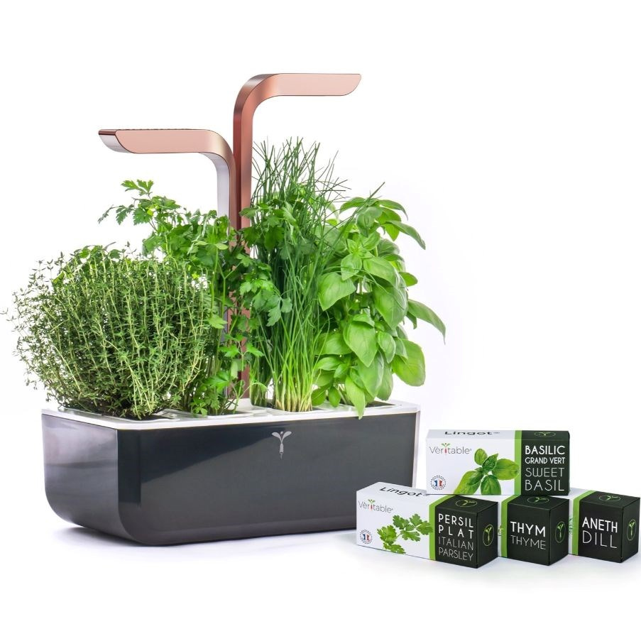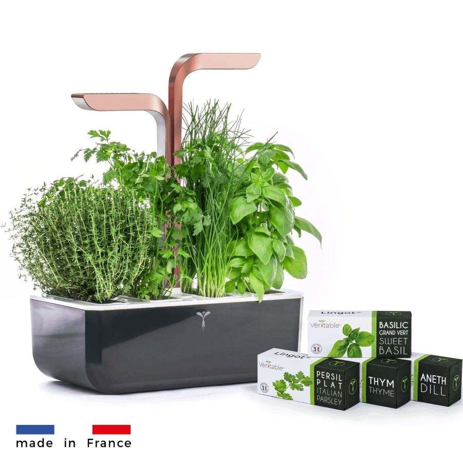Véritable Smart může současně pojmout až čtyři Lingoty, což vám umožňuje pěstovat různé odrůdy rostlin. Můžete si vybrat z více než 70 typů semenných kapslí, od čerstvých bylinek jako je bazalka a máta po listovou zeleninu, exotické byliny a jedlé květiny. Tato flexibilita vám umožňuje vytvořit mini vnitřní zahradu s různorodým spektrem chutí, které obohatí vaše jídlo. Se zahrádkou jsou dodávány 4 bylinkové Lingoty, abyste mohli rovnou začít!
