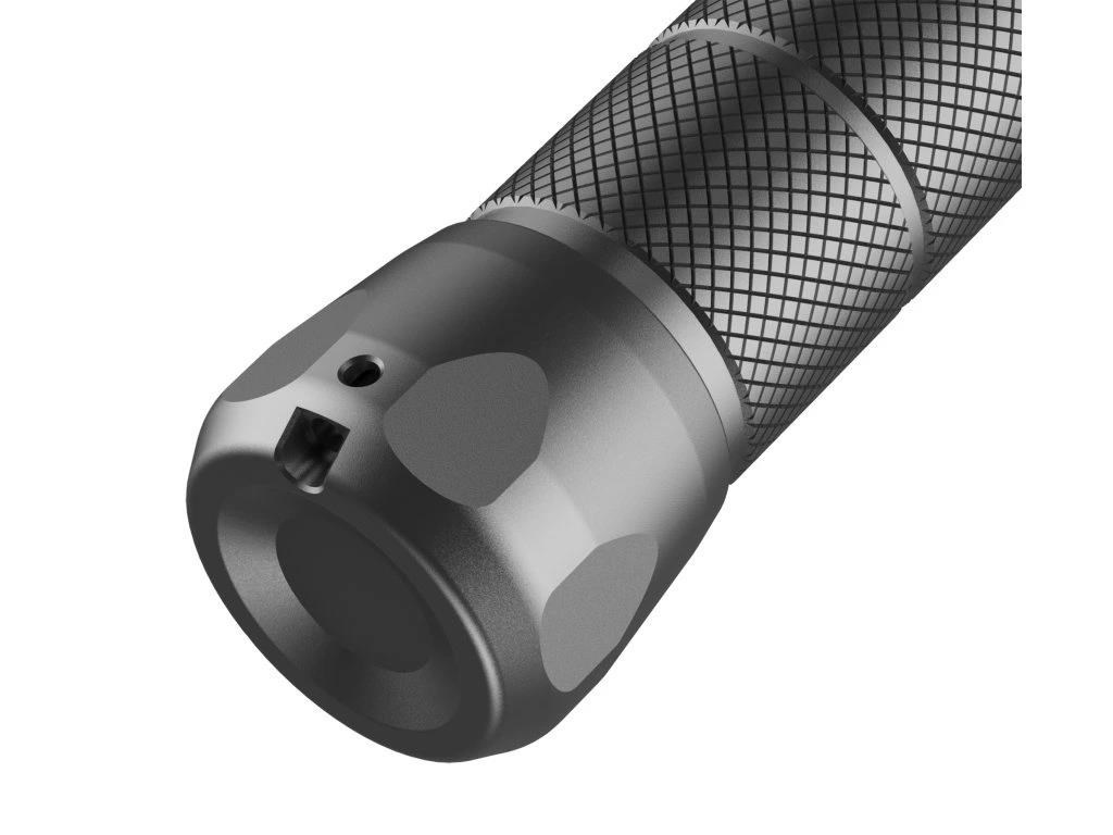 | Režim ovládání: | Stisknutím vypínače ON/OFF aktivujete světlo a následně jednotlivými stisknutími přepínáte mezi jednotlivými světelnými módy až do případného vypnutí. Dvojstiskem vypínače ON/OFF aktivujete stroboskop. Otočením hlavice aktivujete zoom (přiblížení/oddálení). |