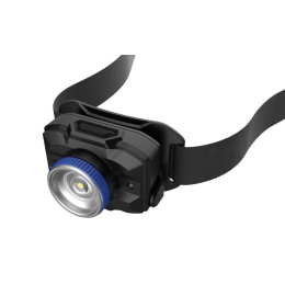 - Červený LED indikátor: Pro větší bezpečnost a lepší viditelnost, čelovka je vybavena červeným světlem a stroboskopem.