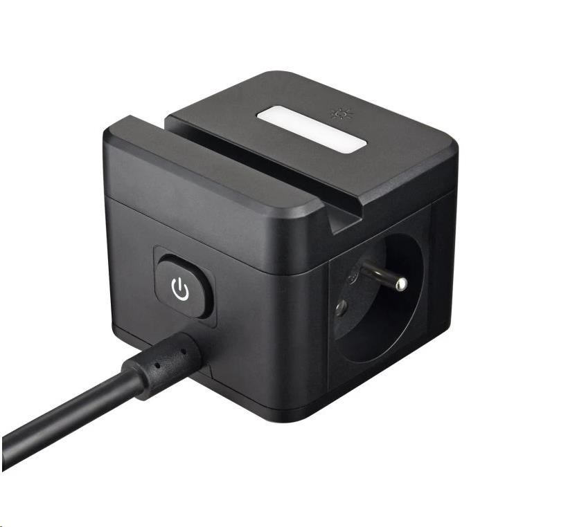 Viking síťový adaptér YC23H, 2x 230 V, 1x USB-A, 2x USB-C, dotykové světlo, funkce stojánku, černá