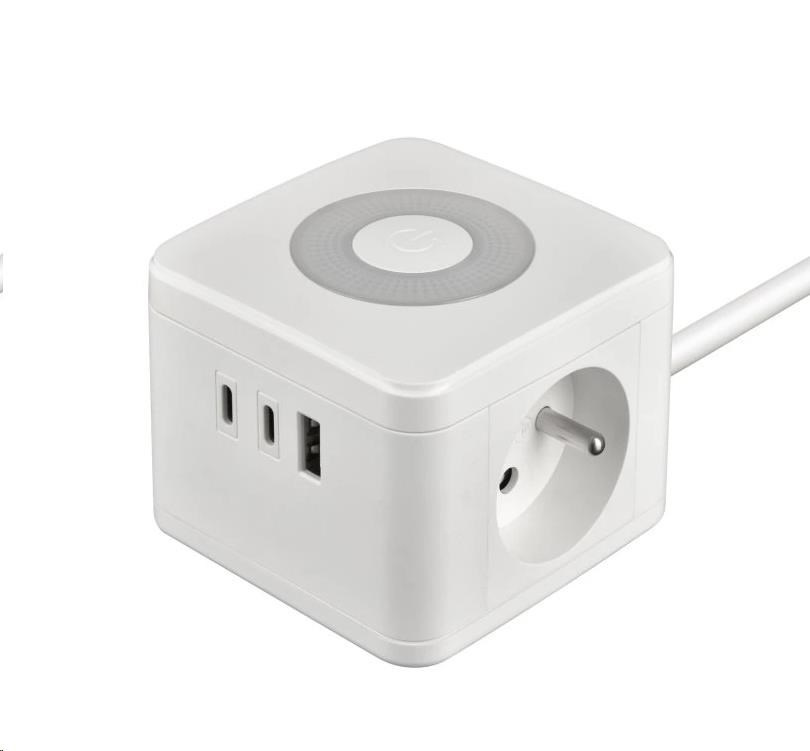Viking síťový adaptér YC23L, 2x 230 V, 1x USB-A, 2x USB-C, dotykové světlo, délka 1,4 m, bílá