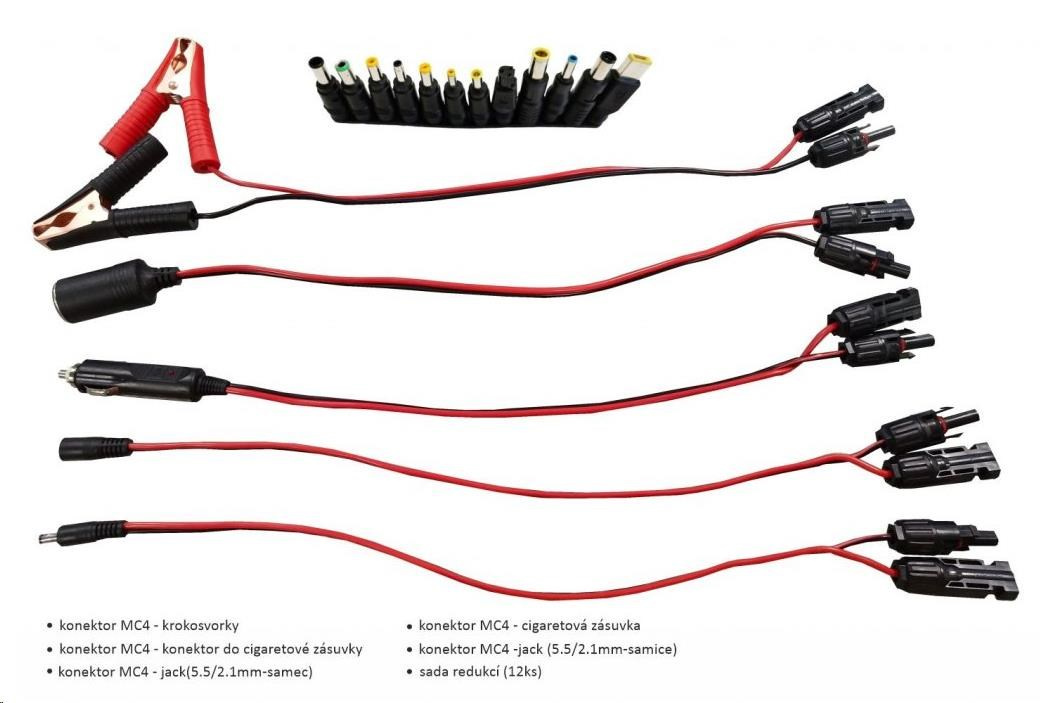 - Velké množství redukcí a konektorů pro neomezené možnosti nabíjení