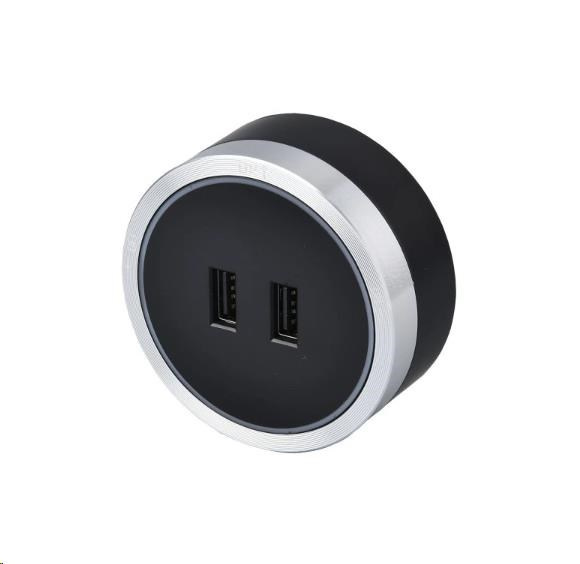 Viking zásuvkový modul A50, 2x USB-A, stříbrno-černá
