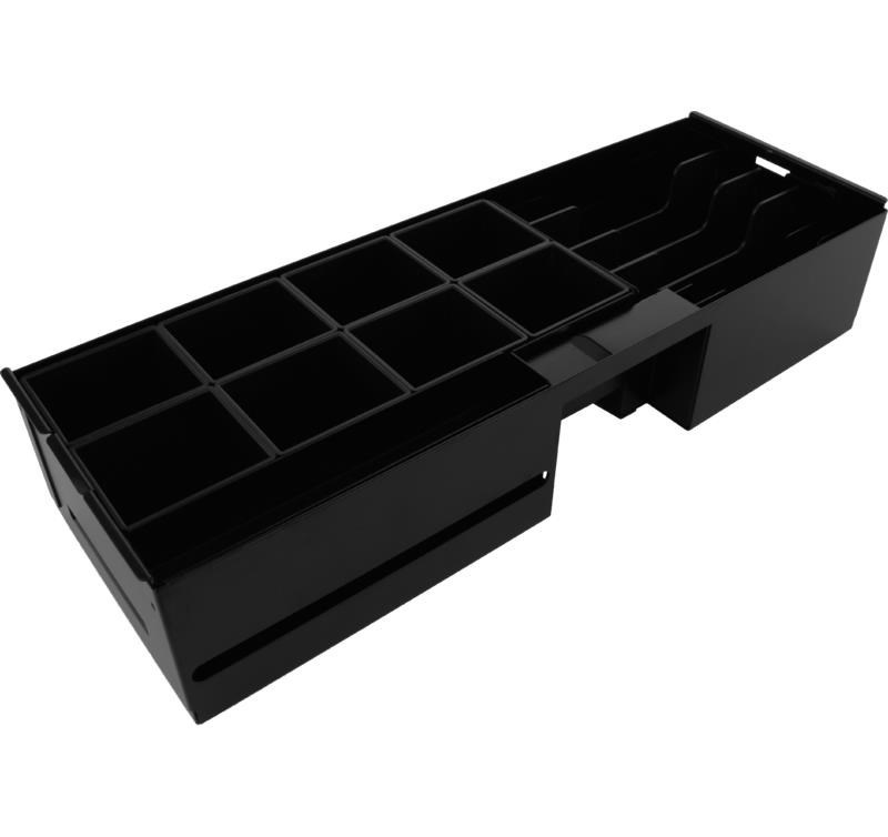 - Vyjímatelný kovový zásobník na bankovky s plastovými oddělovači přihrádek