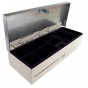 Virtuos pokladní zásuvka Flip-top FT-460C3 - s kabelem, se zamykacím krytem, NEREZ víko, bílá