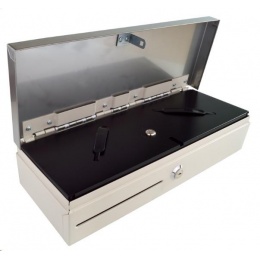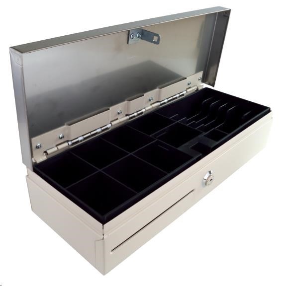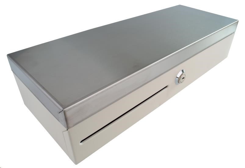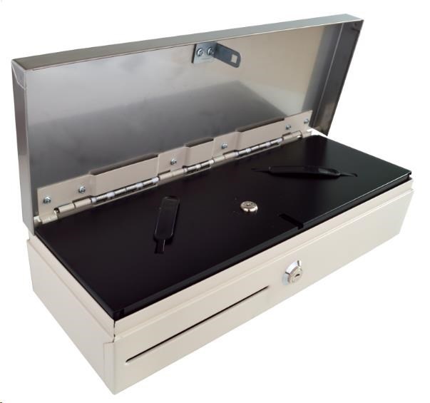Virtuos pokladní zásuvka Flip-top FT-460C3 - s kabelem, se zamykacím krytem, NEREZ víko, bílá
