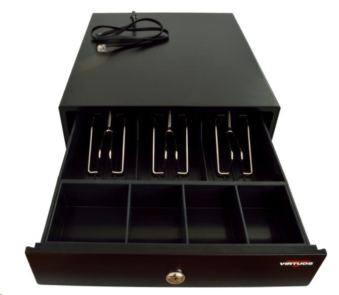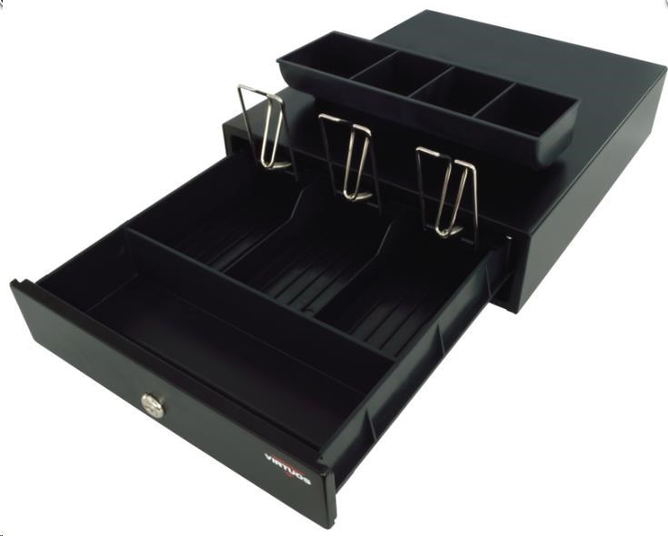 Virtuos pokladní zásuvka mikro EK-300C, 9V-24V, s kabelem 24V, pořadač 3/4, černá