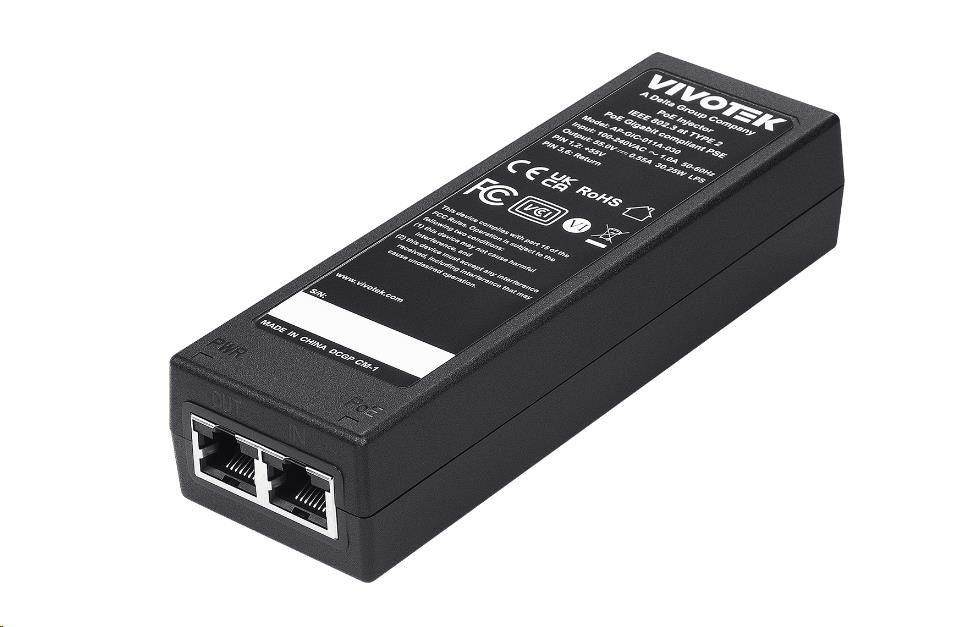 Vivotek vnitřní gigabit injektor PoE napájení (802.3af/at), 30W, ochrana proti přepětí, MTBF 200k hodin