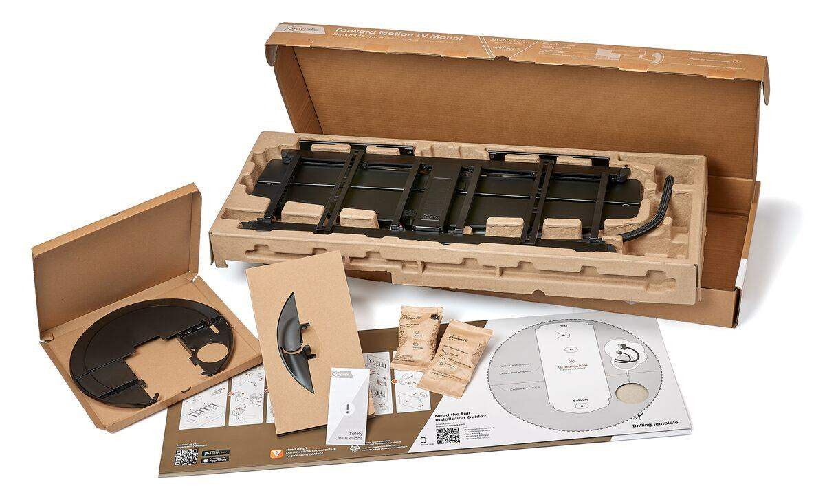 - Snadná instalace s aplikací DrillRight™ AR App - vyznačení všech otvorů pro montáž držáku v požadované poloze TV na stěně