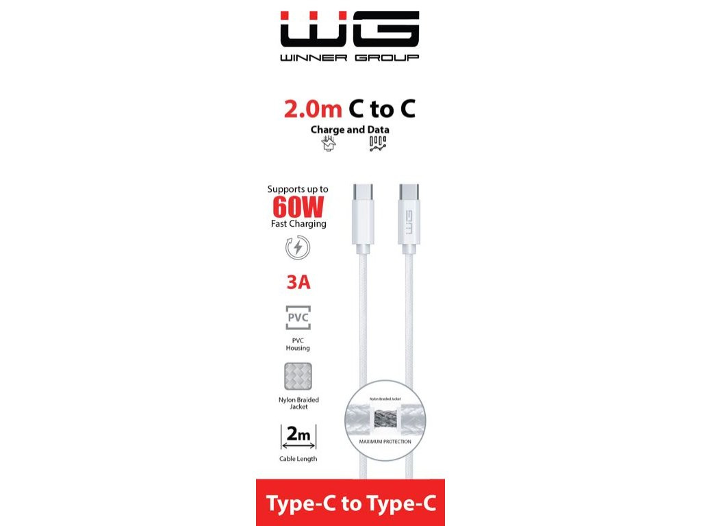 WG - Datový kabel Type-C na Type-C, 2 metry, 3A, 60W, bílá