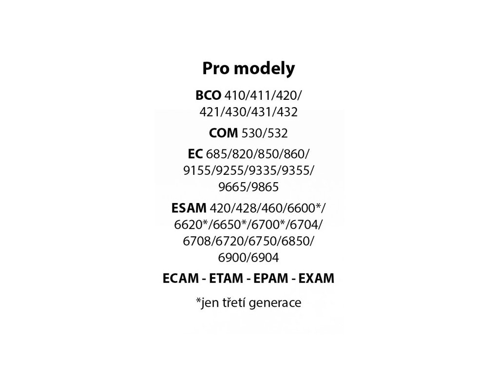 - Kompatibilita: Vhodný pro většinu plnoautomatických kávovarů značky DeLonghi (viz.obrázek v příloze).