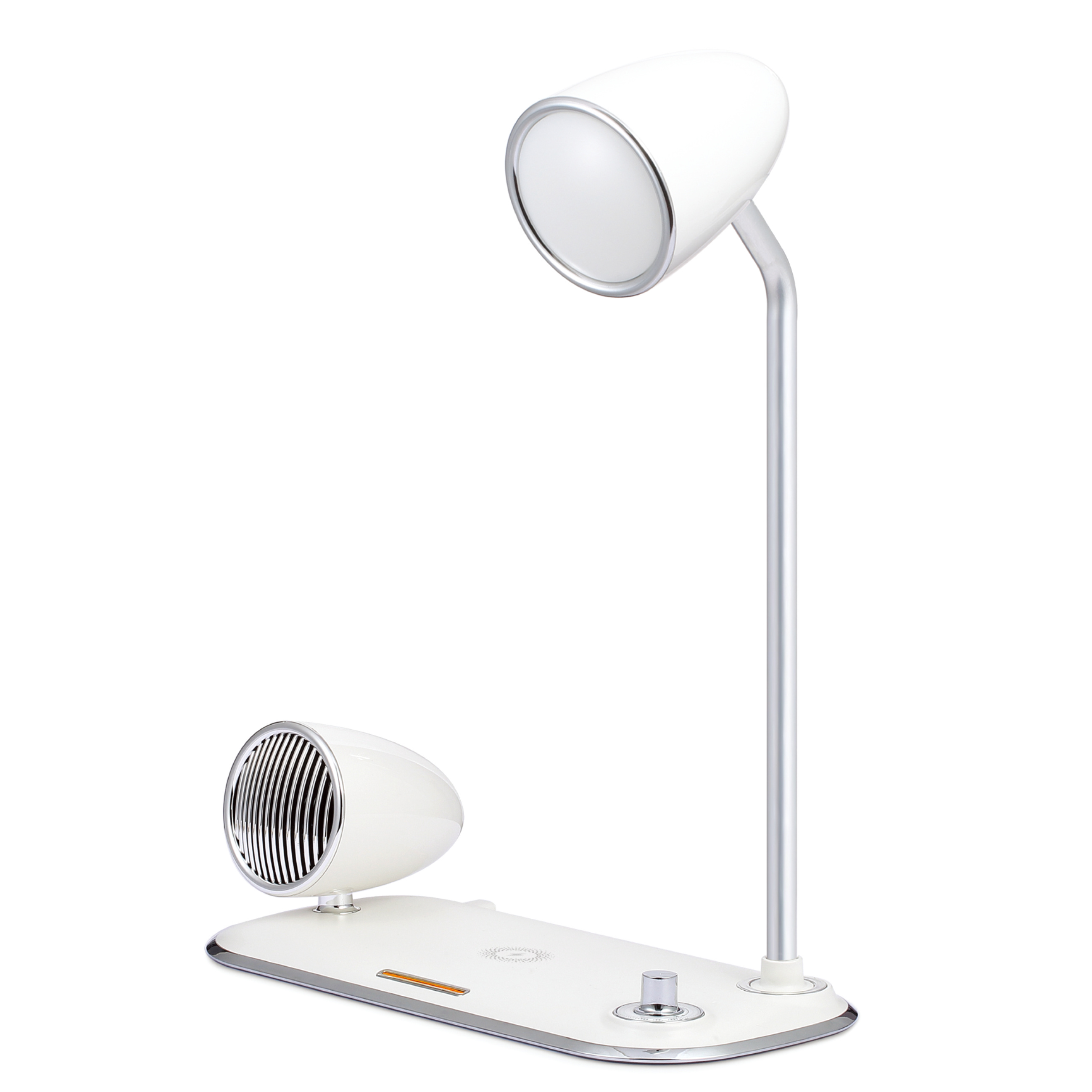 LED lampa s bezdrátovým nabíjením a bluetooth reproduktorem (Bílá)