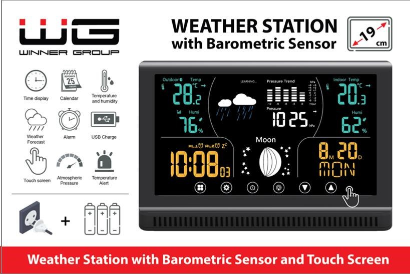 Naše malá, kompaktní a elegantní Meteostanice WG3 dokáže měřit vnitřní i vnější teploty i vlhkost, takže máte přehled o teplotách venku i doma. Meteostanice je vybavena LCD displejem a také stojánkem, který je umístěný na zadní straně a tímto jí lze buď postavit, nebo pověsit na zeď. Na přístroji také zjistíte atmosférický tlak, předpověď počasí, nebo Vám zobrazí měsíční fázi.