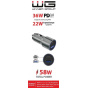 WG - Nabíječka do auta 2x USB 58,5W , 1x USB-C PD 36W + 1x USB-A 22.5W, stříbrná