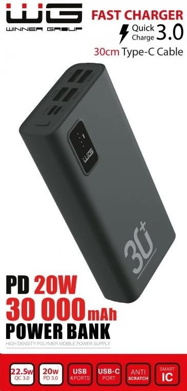 WG - Power Bank 30000 mAh, USB-C PD 20W, černá