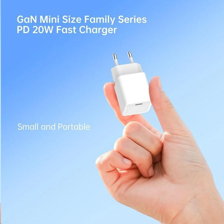 Tato kompaktní a výkonná síťová nabíječka GaN je vybavena jedním portem USB-C a podporuje technologii Power Delivery s výkonem až 20W. Součástí balení je také oboustranný kabel USB-C to USB-C, který umožňuje rychlé a efektivní nabíjení.