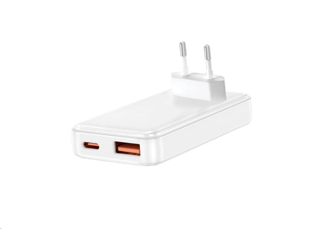 WG - Síťová nabíječka GaN 2x USB, 1x USB-C 30W + 1x USB-A 18W, white