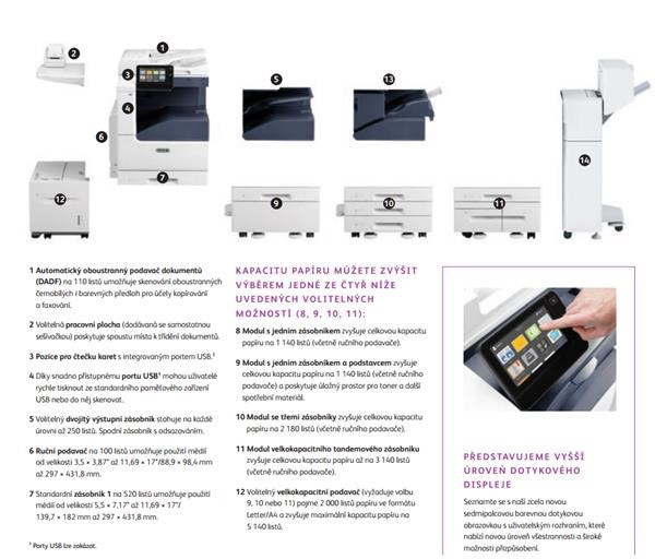 - Správa tisku: Standardní účtování Xerox®; volitelně: Xerox Workplace Suite/Cloud, Xerox® Virtual Print Management Service, více na www.xerox.com/cs-cz/office/reseni protiskarny#printmanagement
