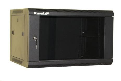 XtendLan 19" nástěnný rozvaděč 9U 600x600, nosnost 60 kg, skleněné kouřové dveře, svařovaný, černý