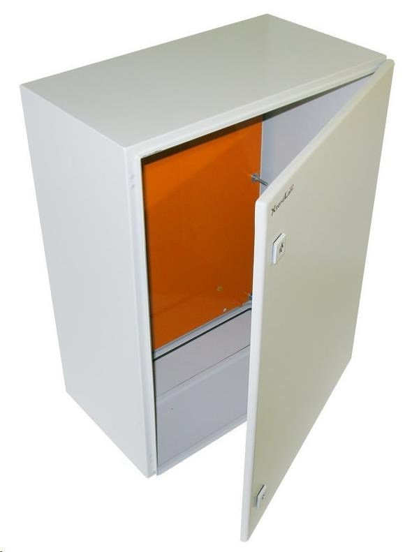 Univerzální rozvaděč, IP66, ocelový, šedý. Třívrstvá povrchová úprava (fosfátování, máčení v základním laku, práškový lak), zaměnitelné dveře, pevná konstrukce. Odnímatelný kryt kabelového průchodu. Rozvaděč je vyroben z válcované oceli o tloušťce 1,5 mm. Standardy: IEC60529, EN60529/10.91, GB4208-93 Provedení: dveře - plné, otevíratelné o 110 stupňů, montáž pravá nebo levá (uživatelsky zaměnitelné otevírání) zádní kryt - plný boční kryt - plný horní kryt - plný montážní deska: