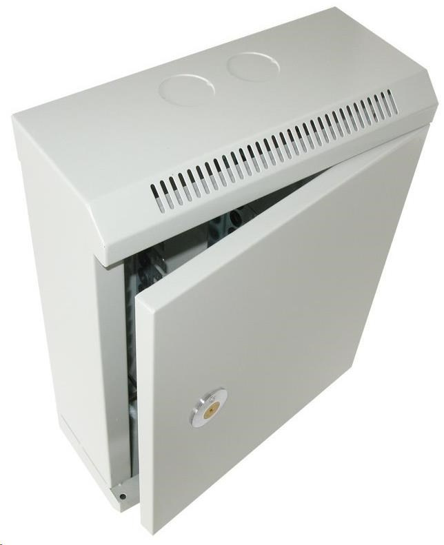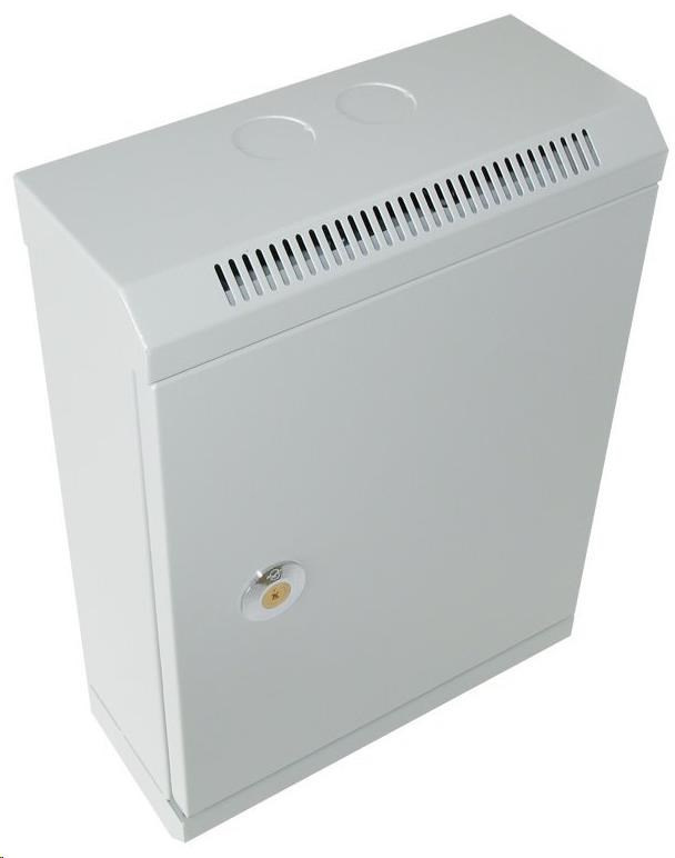 Kovový rozvaděč pro vnitřní instalace na zeď. Pro aktivní prvky a jiné. Rozvaděč je opatřen zámkem a ventilačními otvory.