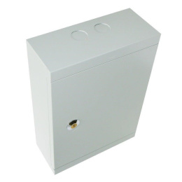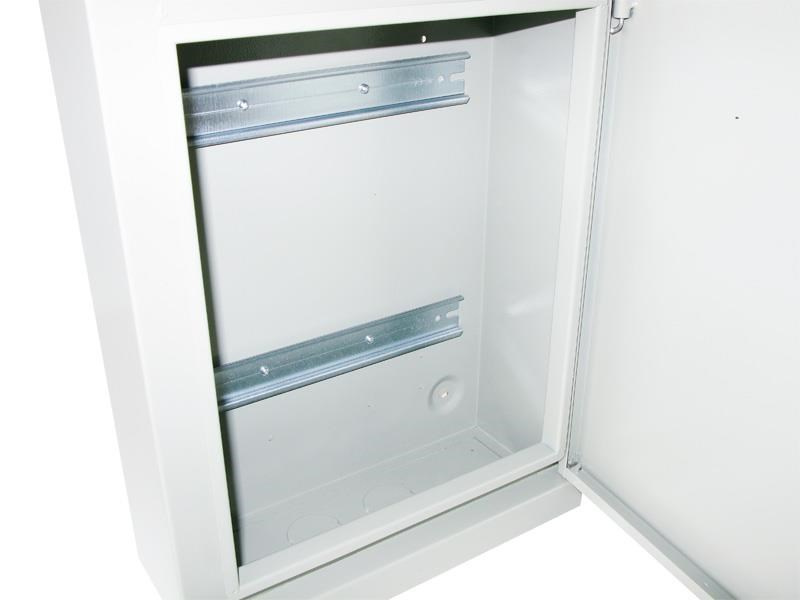 Kovový rozvaděč pro vnitřní instalace s DIN lištou. Rozvaděč je opatřen kovovým zámkem a ventilačními otvory.