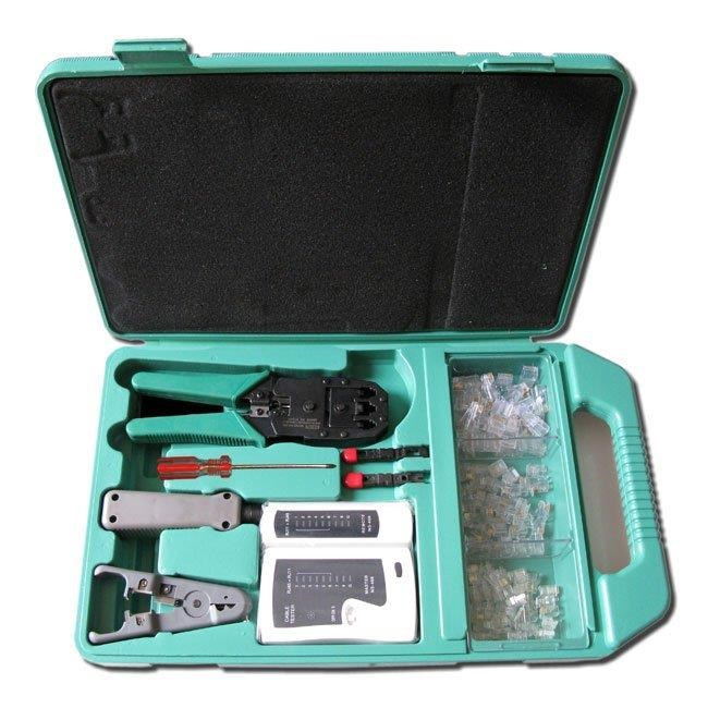 Sada obsahuje: - kleště krimpovací pro konektory RJ10, RJ11, RJ12, RJ45, DEC s odizolovávačem - narážeč pro blok 110 + náhradní břity - stripovací nástroj UTP/STP - tester UTP/STP kabelů RJ11/RJ12/RJ45, loopback - křížový šroubovák - 20x konektor RJ-45 - 20x konektor RJ-12 - 20x konektor RJ-11.Typ komponenty: