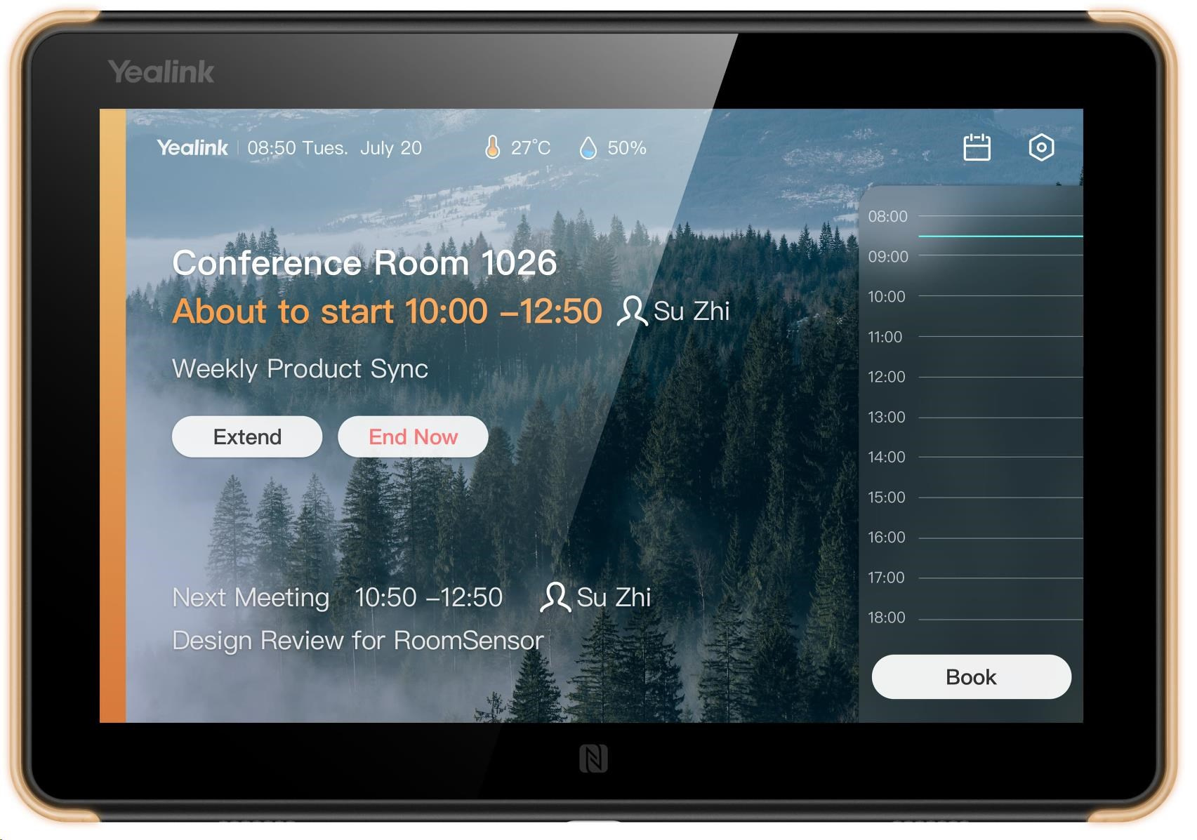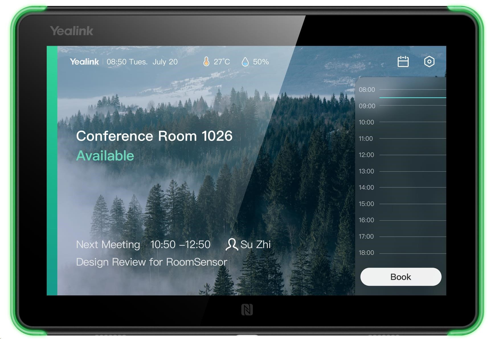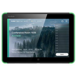 Yealink RoomPanel je profesionální multifunkční zařízení pro plánování místností s 8palcovou dotykovou obrazovkou, operačním systémem Android 9.0, plně RGB LED, duálním mikrofonem a sadou reproduktorů. Kompaktní panel typu "vše v jednom" nejen zobrazuje stav místnosti v reálném čase, ale umožňuje také ad hoc rezervace schůzek nebo rezervace dalších zasedacích místností, což zvyšuje efektivitu správy pracovních prostor v podniku. Také díky podpoře PoE a dodávaným držákům s více možnostmi jej lze snadno instalovat na různé povrchy (betonová stěna/sklo/dřevo atd.).