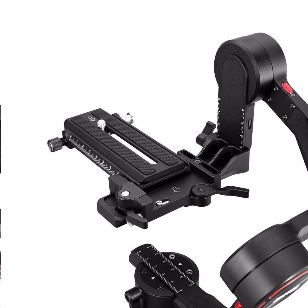 Weebill S používá rychloupínací destičku 2v1 (Arca Swiss i Manfrotto), což umožňuje snadnější nastavení a rychlejší přechod mezi zařízeními bez nutnosti opětovného vyvážení. Konstrukce západky umožňuje snadné uzamčení každé osy pro lepší vyvážení a snadnější složení stabilizátoru.