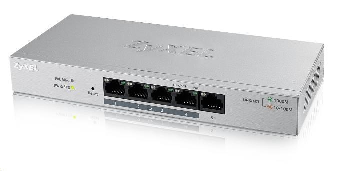 Zyxel GS1005HP 5-port Desktop Gigabit PoE Switch, 4x PoE+ GbE, PoE 60W