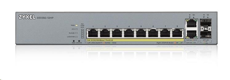 Zyxel GS1350-12HP 12 Port smart managed CCTV PoE switch, long range, 130W, 10x GbE, 2x SFP