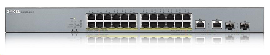 Zyxel GS1350-26HP 26 Port smart managed CCTV PoE switch, long range, 375W, 24x GbE, 2x combo RJ45/SFP